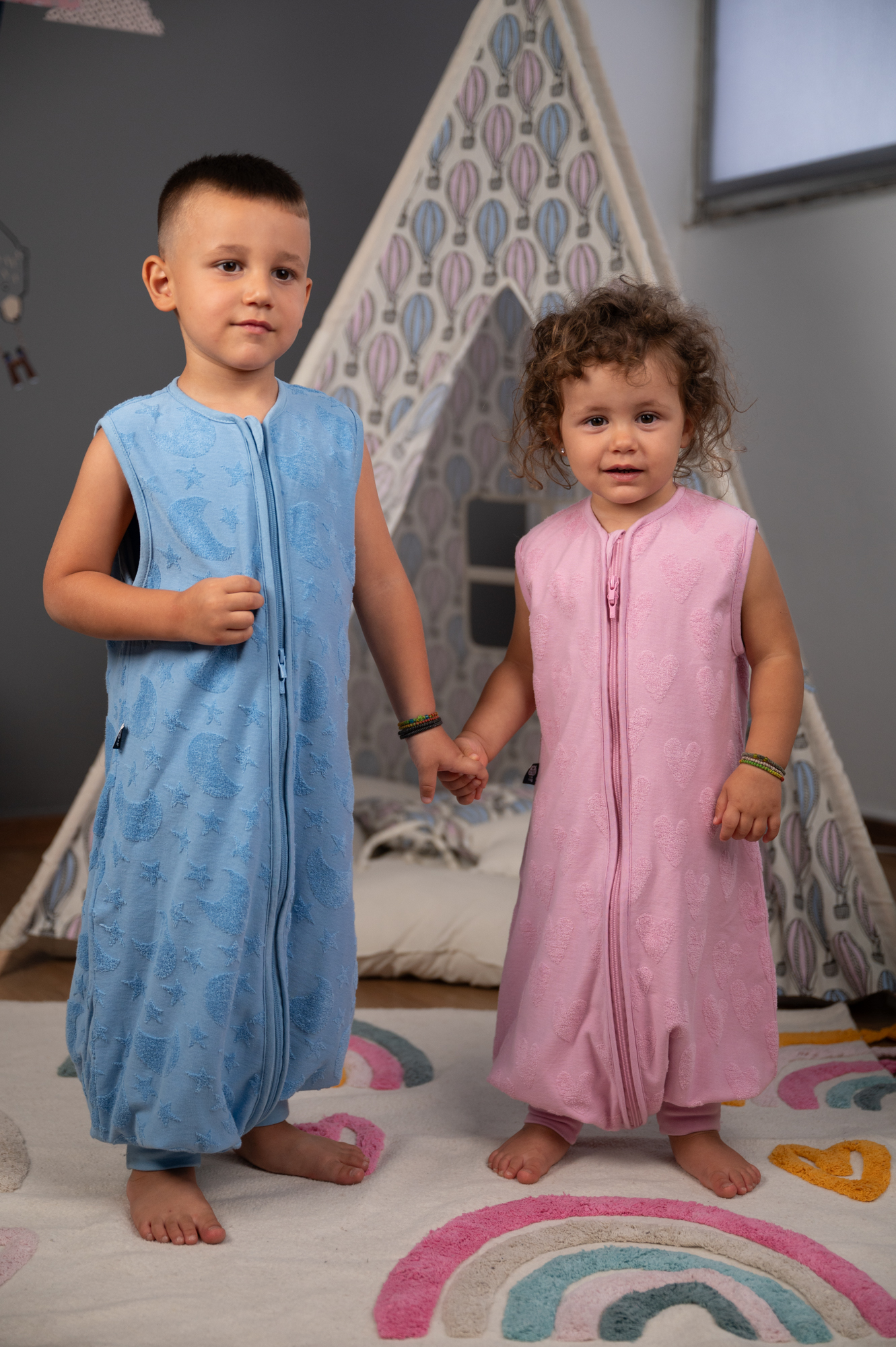Спалните чували BlissJump са предназначени за активни деца, които искат да играят преди лягане или могат да станат през нощта. Това е идеалното решение за родители, които искат да предложат безопасност и комфорт, без да ограничават свободата на детето си. Използвайки спален чувал, няма да се притеснявате, дали детето Ви е отвито или се е завило през глава. Това ще подобри качеството на съня на Вас и на Вашето бебе!