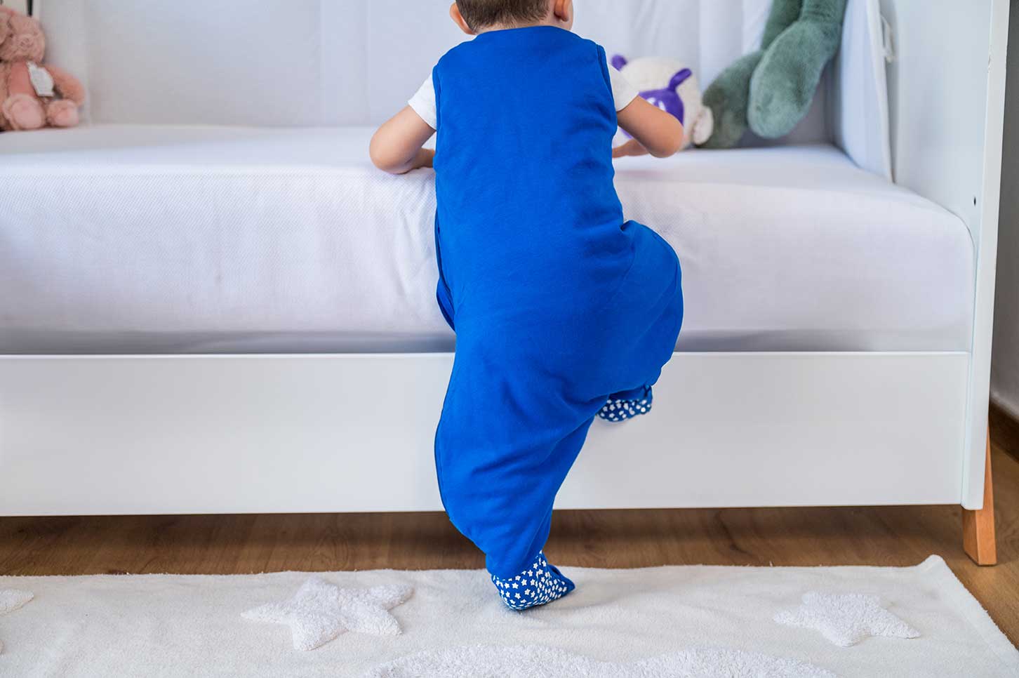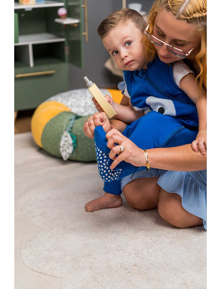 BlissJump позволява на детето да се наслаждава на свободата на играта, докато спи безопасно и топло. Дишащата материя осигурява постоянна температура, така че детето да не се поти и да не измръзва, независимо колко се движи през нощта.