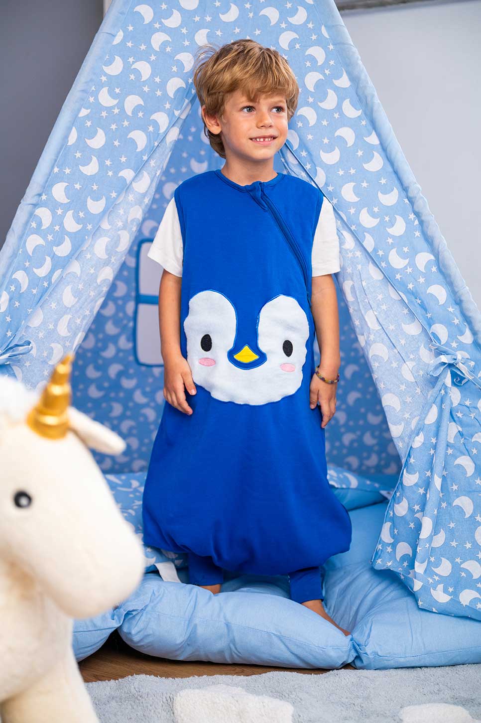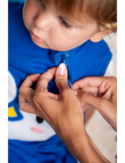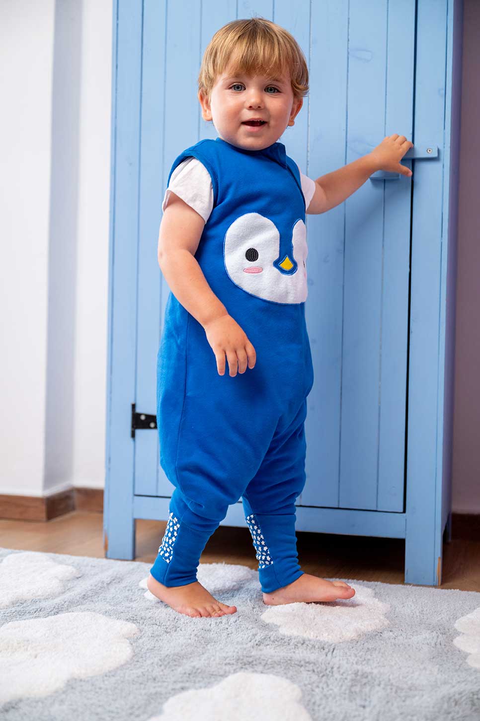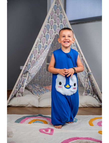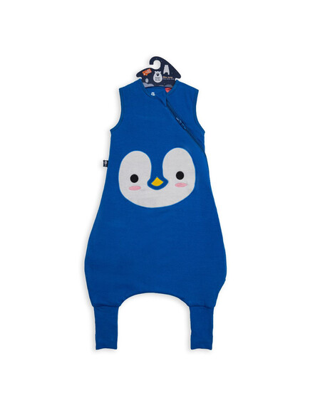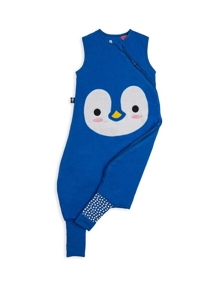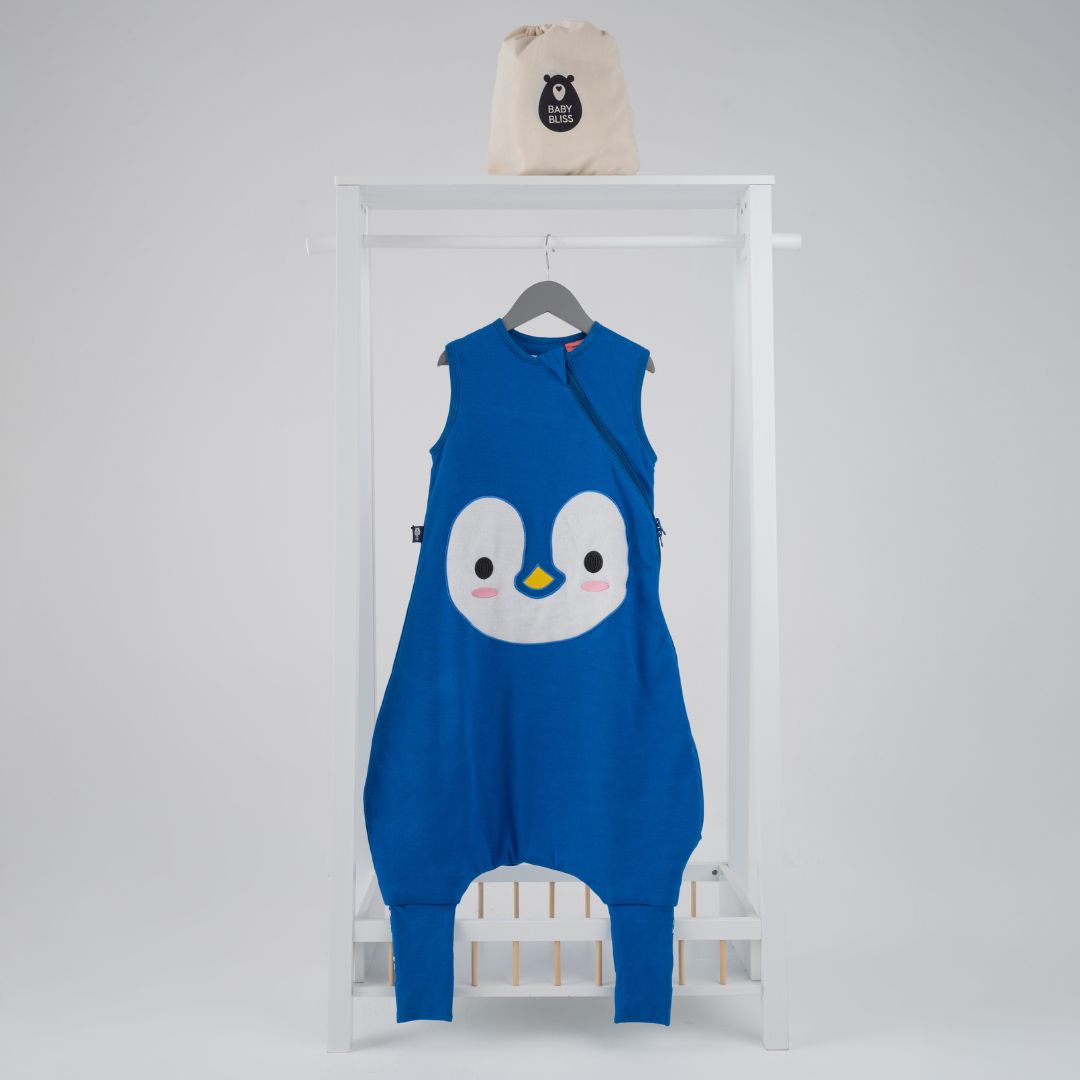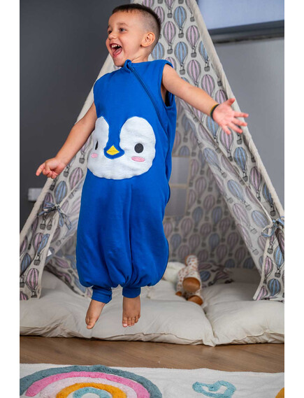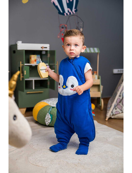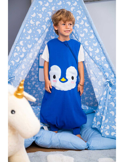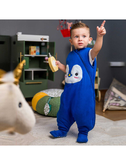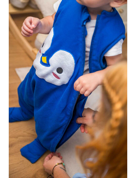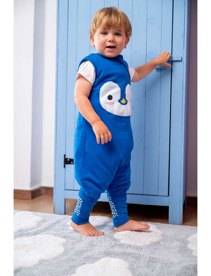 BabyBliss - BlissJump: Спален чувал с крачета от органичен памук - 2.5 тог за температура 16-20°C - "Penguin Blue"