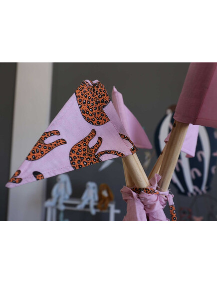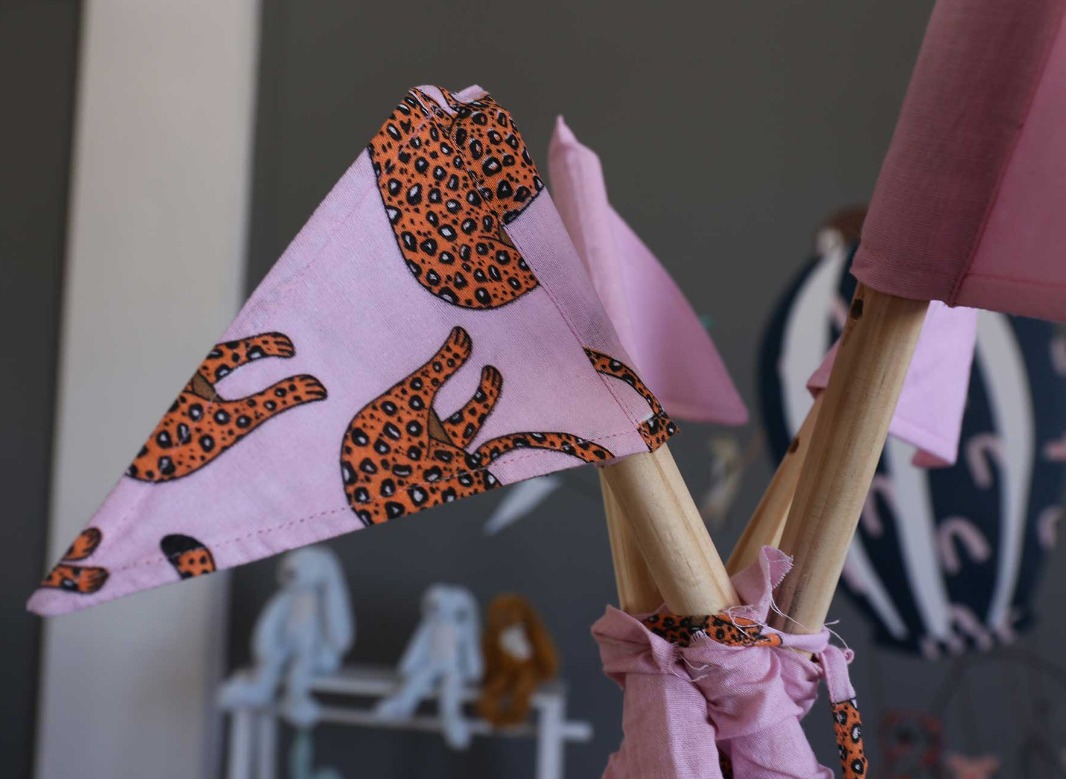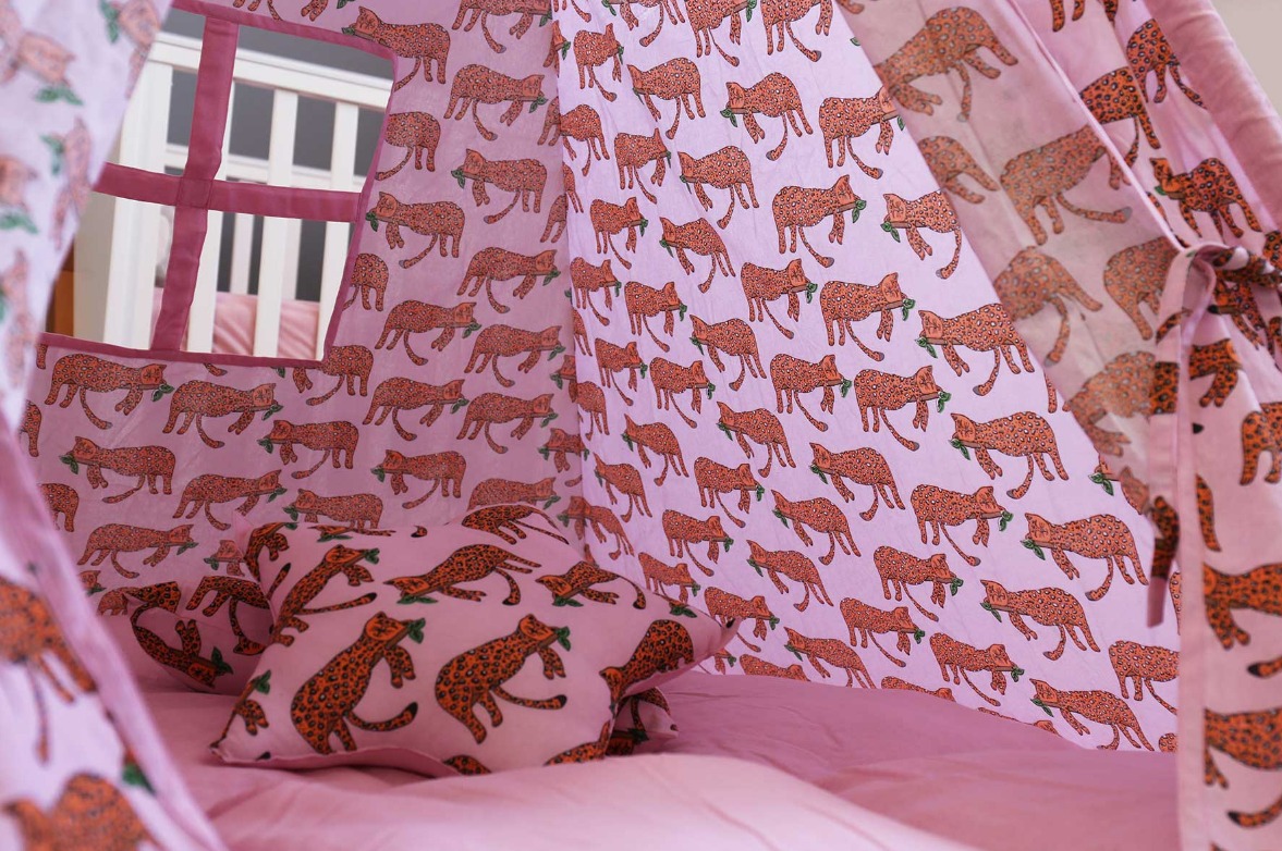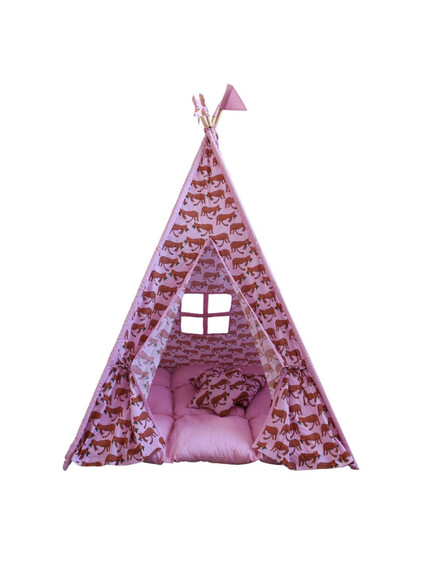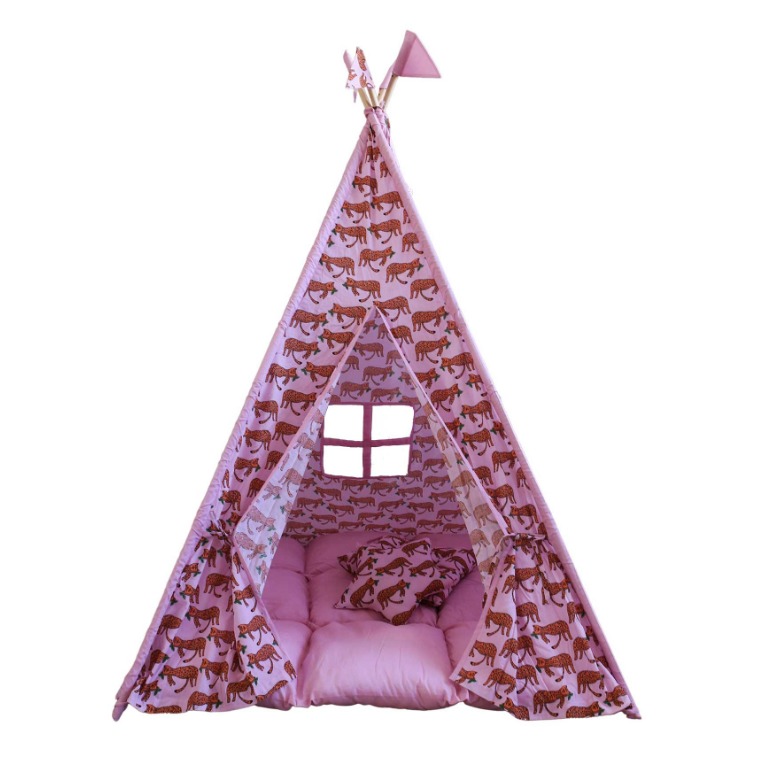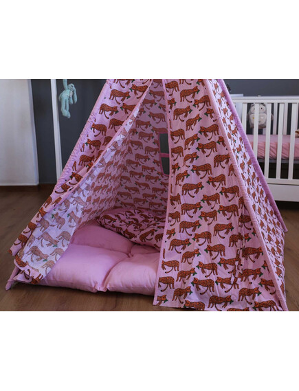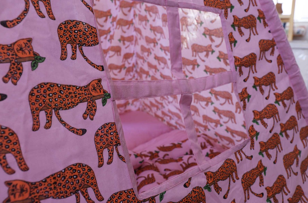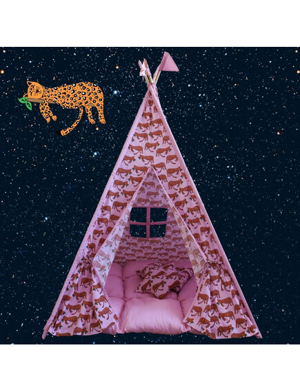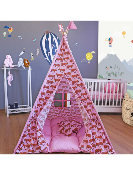 Изработени от естествени материали, със здрава дървена рамка, памучни тъкани и изключително дебела и пухкава основна възглавница създават най-топлото убежище за въображението на Вашето дете. Да не забравяме и другите две възглавници, едната в квадратна, а другата във формата на звезда, за почивка или пък.. за бой с възглавници!