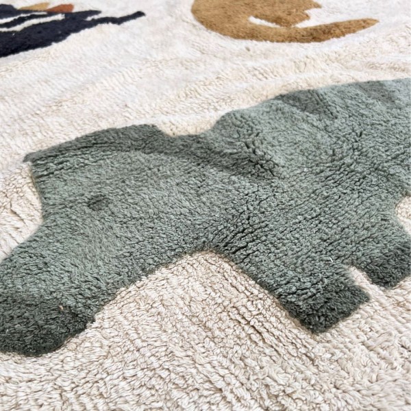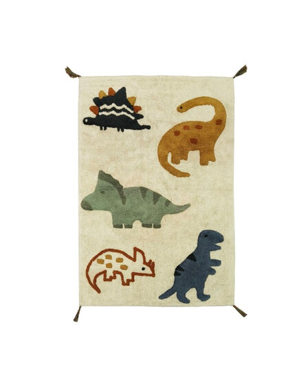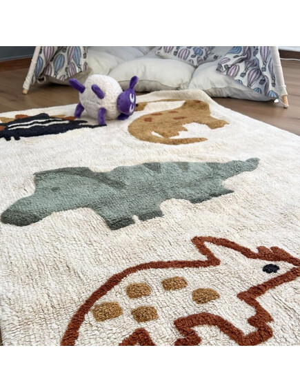 - Размерите му са 120х200 см, което го прави нито малък, нито прекалено голям Прекрасните цветове и сладките динозавърчета създават уникална естетика, насърчавайки въображението на децата и добавяйки нотка на игрива радост към всяко помещение
