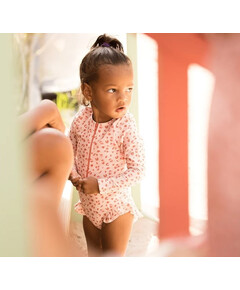 Swim Essentials : Цял бански костюм с ръкав и къдрички с размери от 0 до 6г. "Old pink Leopard"