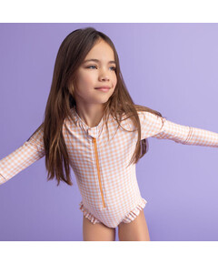 Swim Essentials : Цял бански костюм с ръкав и къдрички от 0 до 12 г. "Apricot orange"