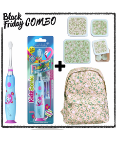 ВНИМАНИЕ: Тази оферта важи само за периода на Black Friday! В нея ще откриете 3 невероятни продукта за малки девойки, от марките Brush Baby и A Little Lovely Company! Всяка раница и кутия за храна може да бъде заменена в дизайн по Ваш избор! 1. Електрическа Четка за зъби...