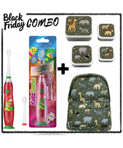 ВНИМАНИЕ: Тази оферта важи само за периода на Black Friday!   В нея ще откриете 3 невероятни продукта за малки герои,  от марките Brush Baby и A Little Lovely Company!   Всяка раница и кутия за храна може да бъде заменена в дизайн по Ваш избор!...