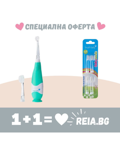 Електрическа четка за зъби BabySonic със сменяеми глави – щастливи усмивки от първото зъбче! Офертата включва: 1. Електрическа четка за зъби BabySonic Teal подходяща за деца 0-3 години BabySonic Teal е първата и удобна четка за зъби за вашите малки деца, която не само почиства...
