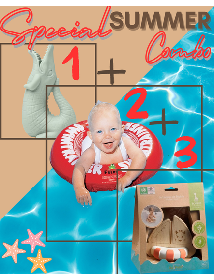 Beach combo: 3 в 1 Обучителен пояс swimtrainer, Еко лодка Sophie la girafe и Силиконова лейка Крокодил