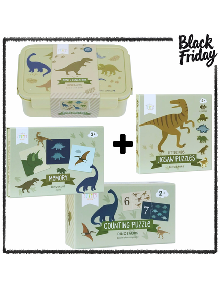 BF Combo: A little Lovely Company "Dino": Кутия за храна + Пъзел - игра за броене + Мемори настолна игра + Пъзел - мозайка