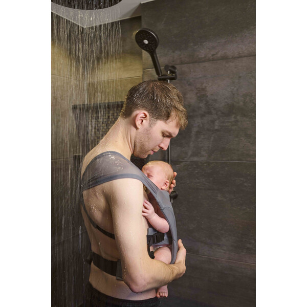 Безопасност и близост по време на къпане! Раницата ви позволява да държите бебето стабилно и удобно, докато се наслаждавате на водата заедно. Мек, бързосъхнещ материал и практични щракващи закопчалки правят поставянето и свалянето лесно, а свободните ръце ви позволяват спокойно да измиете себе си и бебето. Подходяща за новородени и малки бебета, идеална за баня, душ, басейн или морски ваканции.