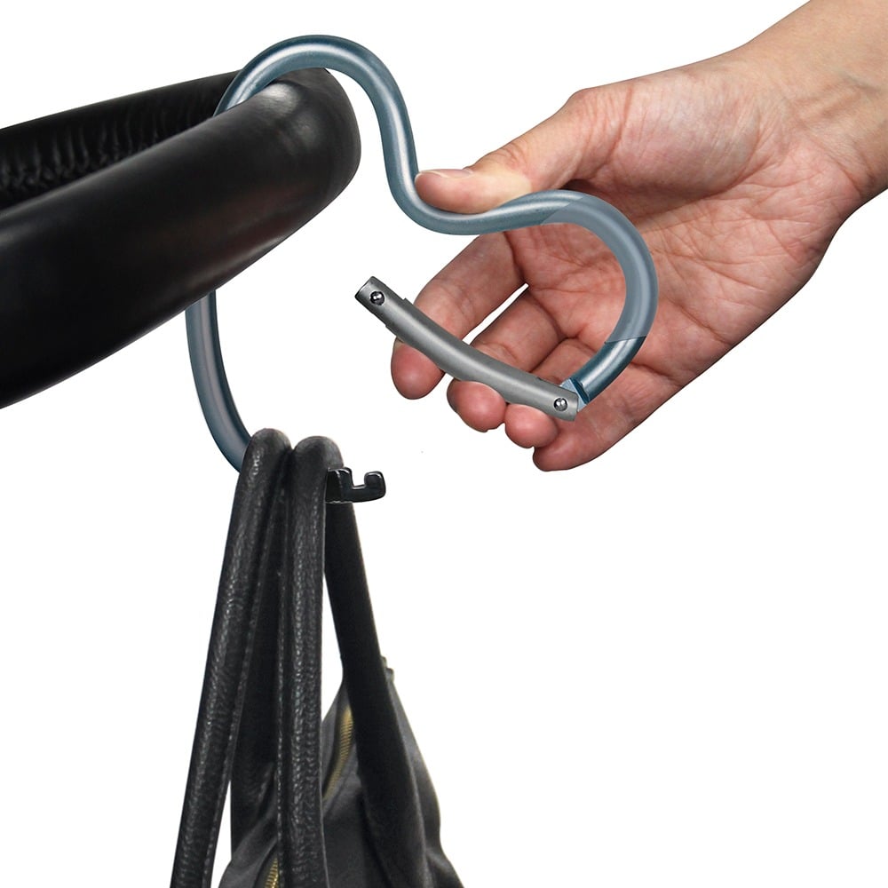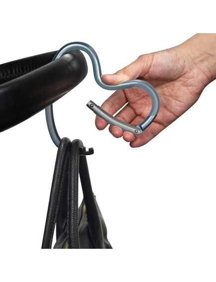 Организирайте лесно своите принадлежности! Куката позволява да закачите чанти, аксесоари или пазарски торби на количката или раницата си. Мекият калъф предпазва ръцете, а вие получавате повече свобода за движение и удобство навсякъде.