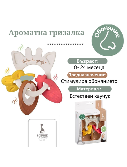 Стимулира обонянието и успокоява бебето с нежни, приятни аромати.