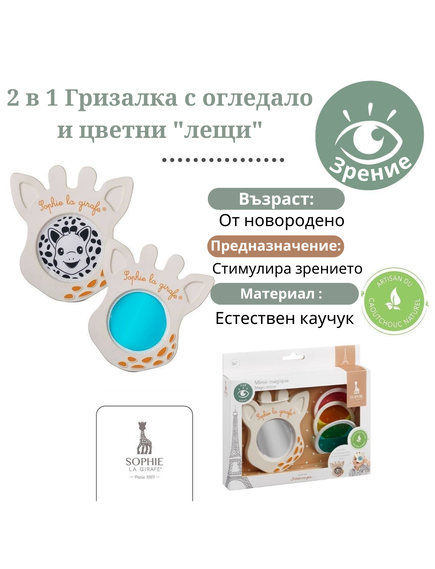 2. 2 в 1 Голяма гризалка + огледало с цветни лещи