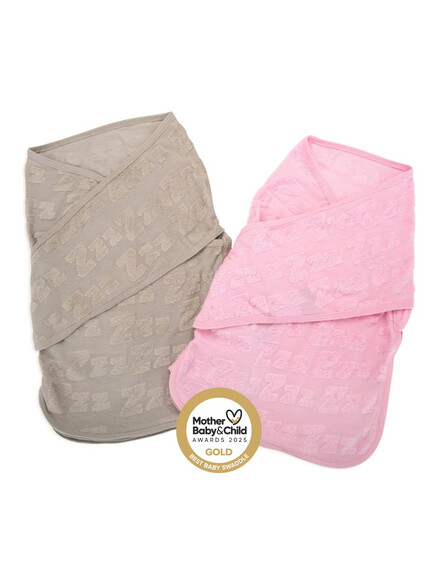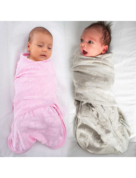 BabyBliss - BlissSnug: Сет от 2 антистрес пелени за повиване - Сиво и Розово (0-3 месеца)