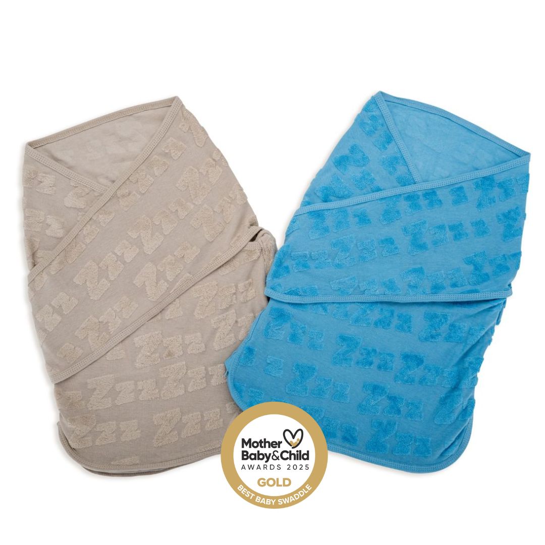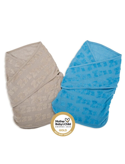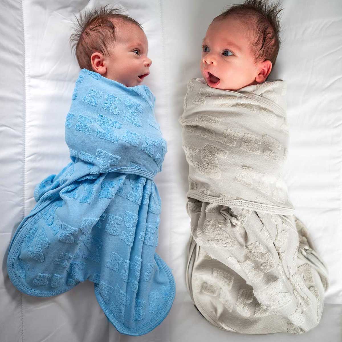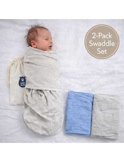 BabyBliss - BlissSnug: Сет от 2 антистрес пелени за повиване - Сиво и Синьо (0-3 месеца)