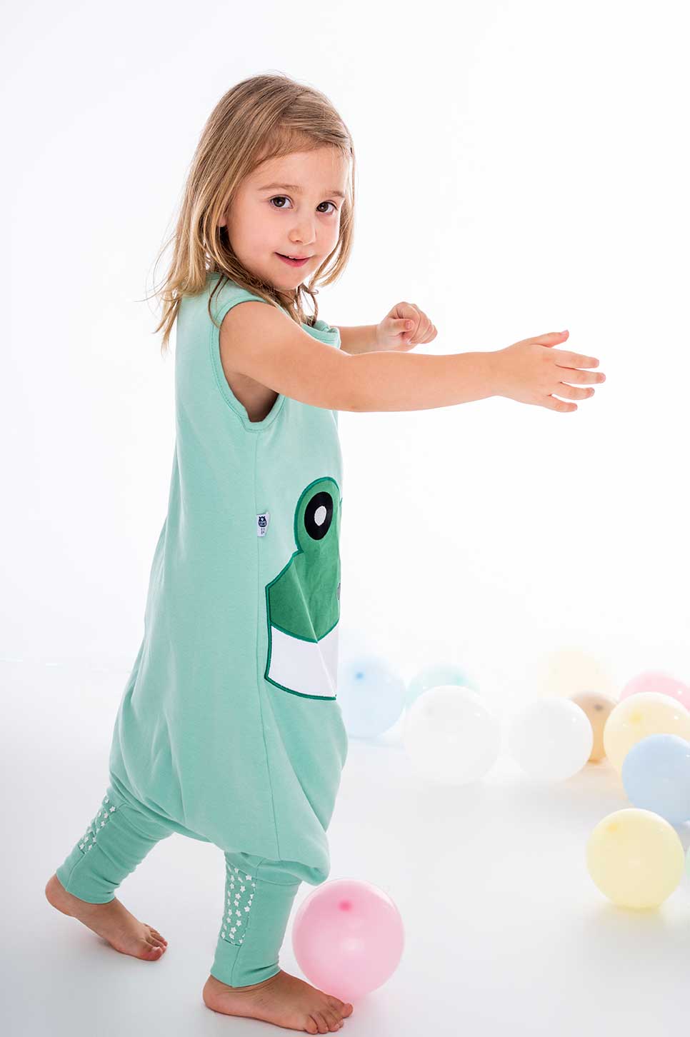 BabyBliss - BlissJump: Спален чувал с крачета от органичен памук - 2.5 тог за температура 16-20°C - "Frog"
