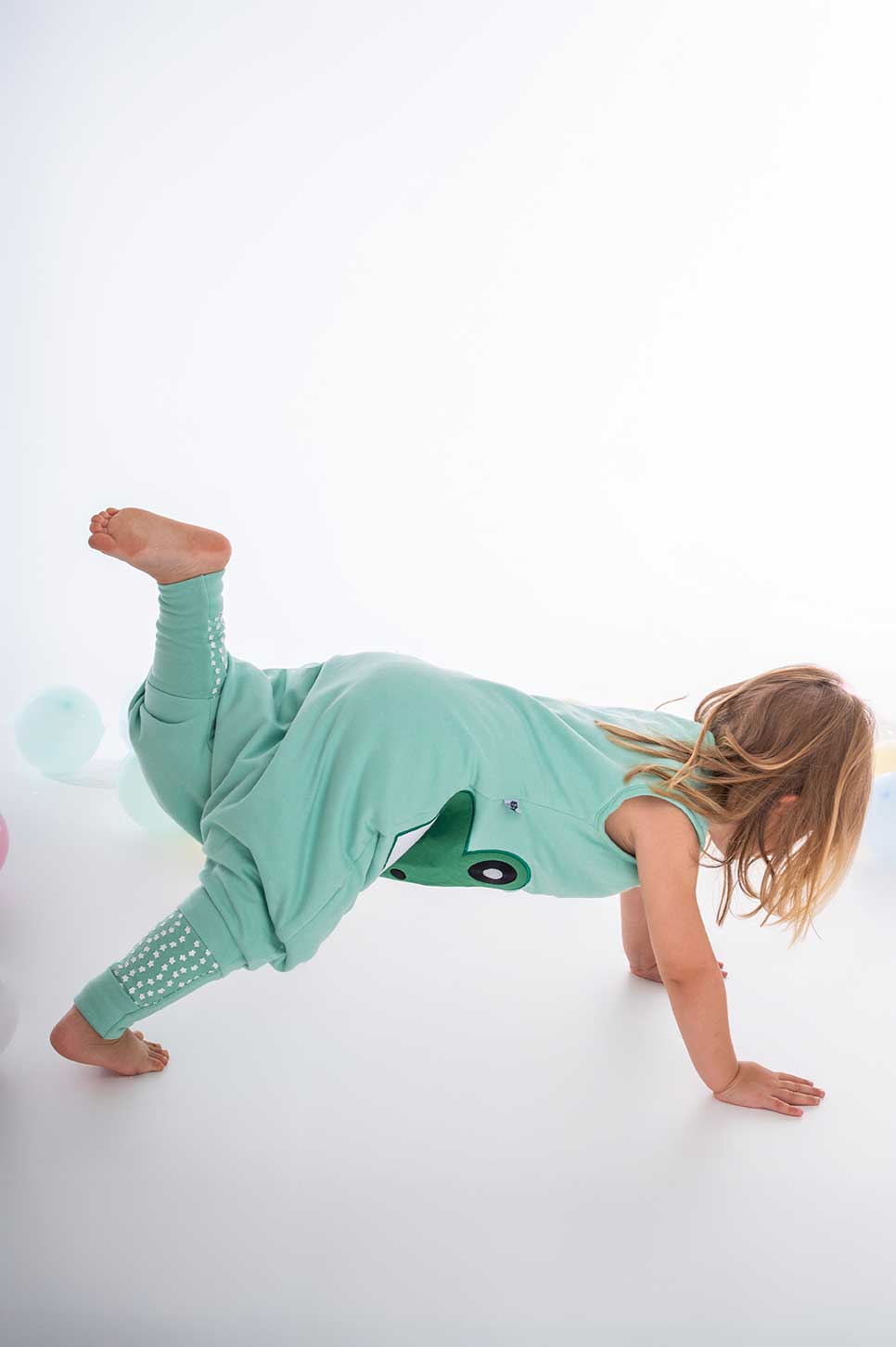 BlissJump позволява на детето да се наслаждава на свободата на играта, докато спи безопасно и топло. Дишащата материя осигурява постоянна температура, така че детето да не се поти и да не измръзва, независимо колко се движи през нощта.