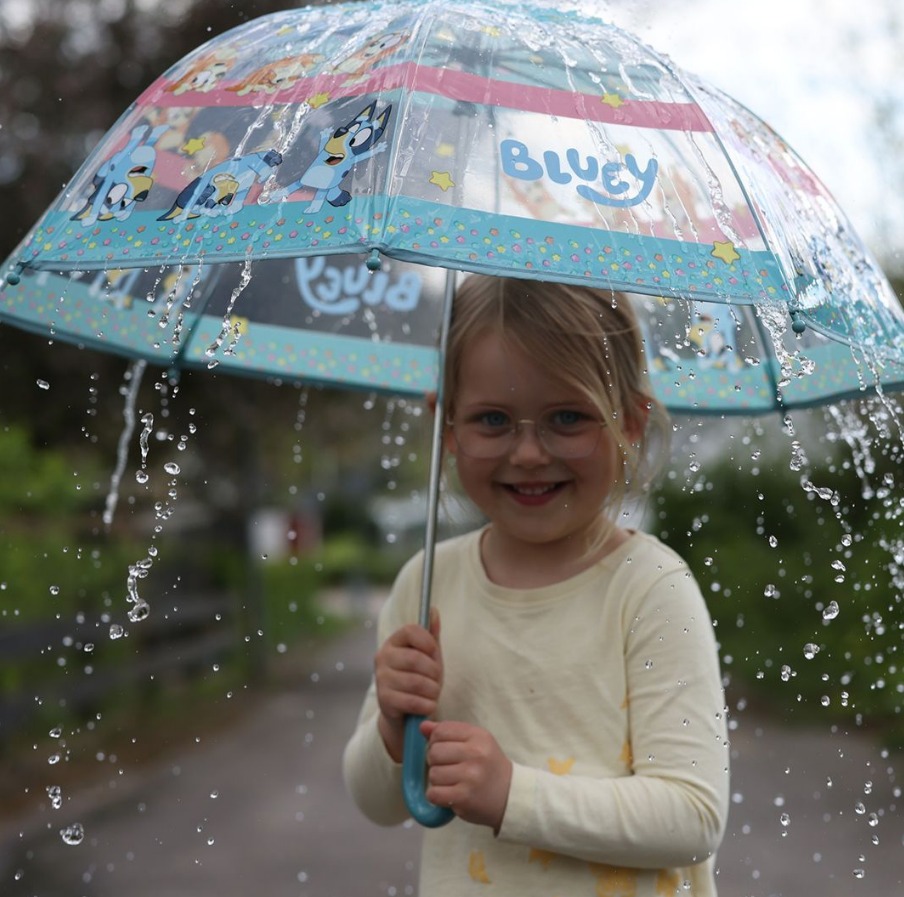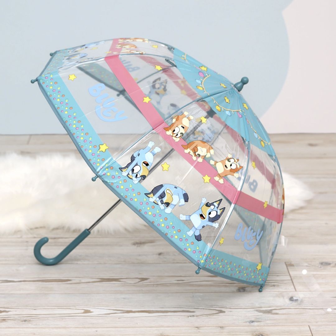 Със своите забавни илюстрации от света на Bluey, този весел детски чадър, ще освежи всеки мрачен и дъждовен ден.
