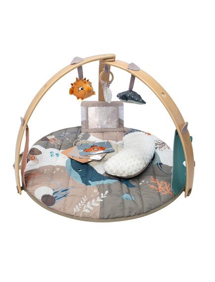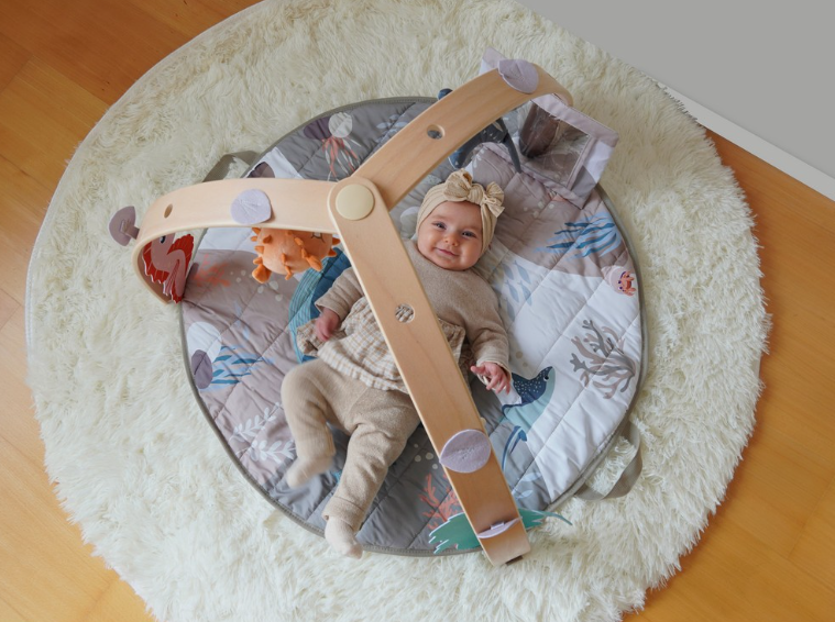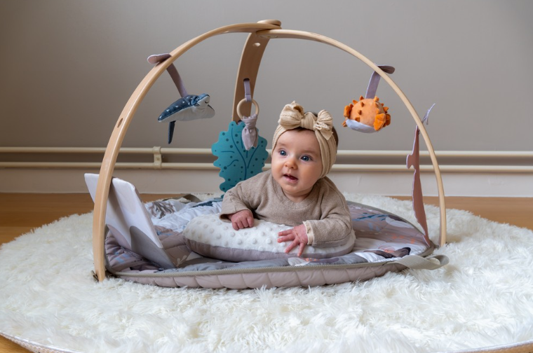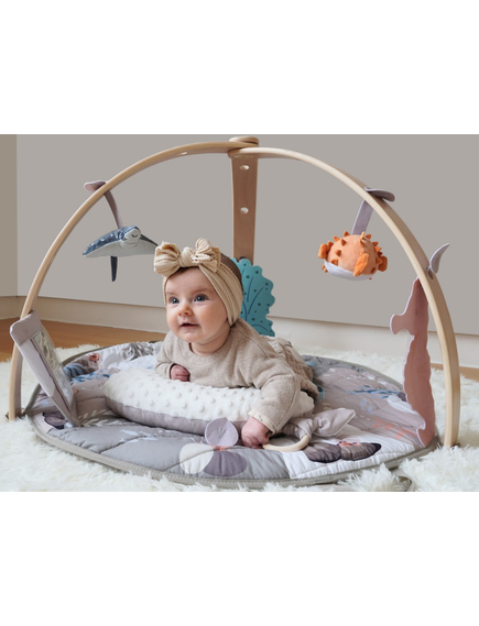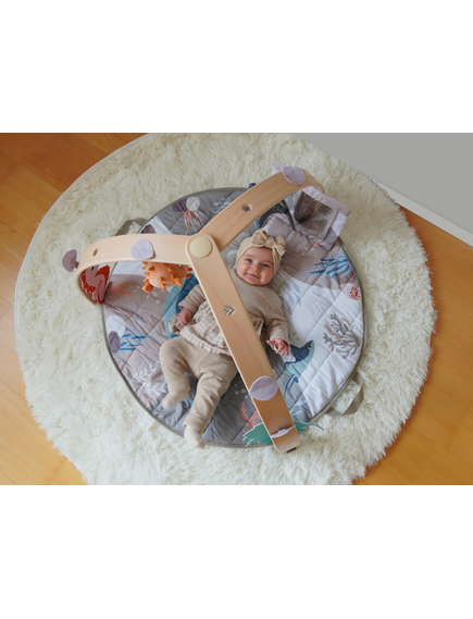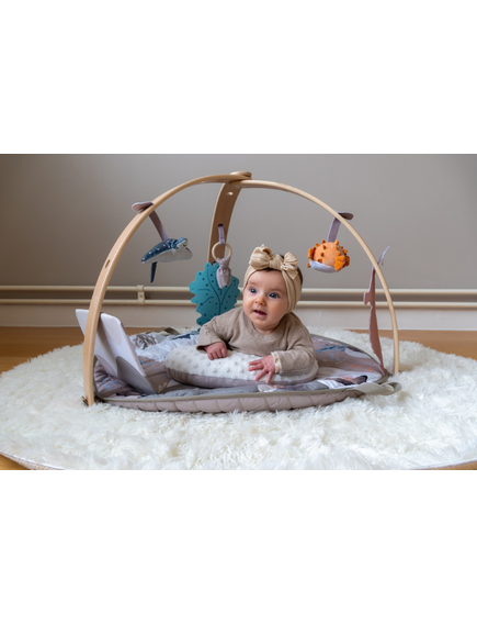 Осигурете спокойно и забавно време за игра на вашето бебе с новата активна гимнастика на Bo Jungle с дървена арка!