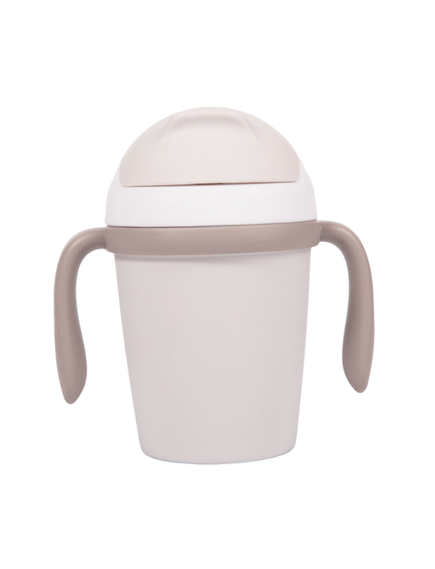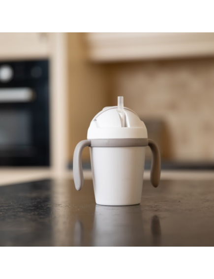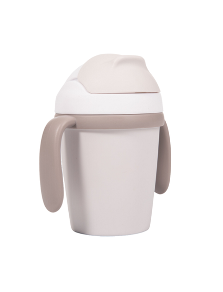 Супер практична, защото се затваря с капак, така че да няма течове и най-важното не влиза в контакт с микроби.Тя също така е образователна, с дръжки отстрани, за може детето да я носи само.