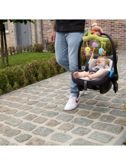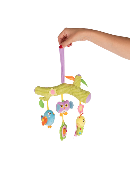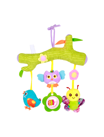 Този прекрасен продукт от Bo Jungle, може да бъде закачен на количката, люлката, кошарата или на столчето в колата на Вашето бебе. Представлява сладка пръчица под, която можете да откриете 3 страхотни висящи играчки във сладки формички.