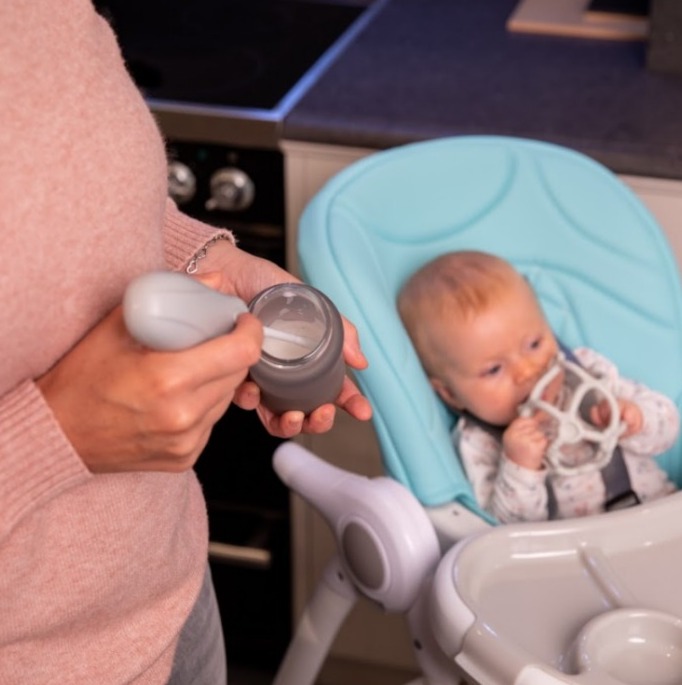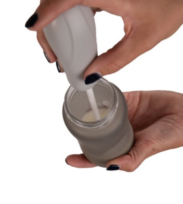 Супер сладко комбо състоящо се от миксер за адаптирано мляко и диспенсър за адаптирано мляко в цвят по избор.