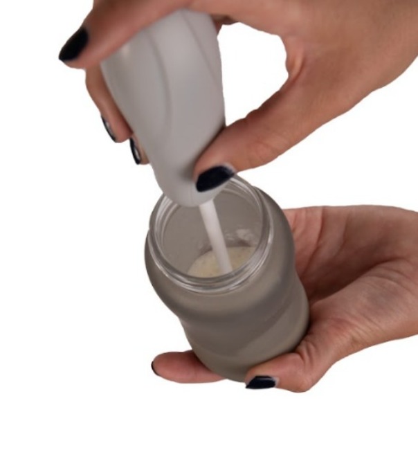 Супер сладко комбо състоящо се от миксер за адаптирано мляко, сет силиконови четки за бутилки и биберони "Сиво" и контейнер за адаптирано мляко в цвят по избор.