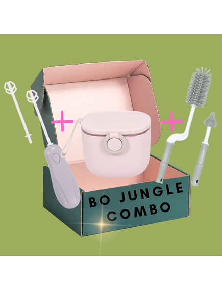 Bo Jungle Комбо: Миксер за адаптирано мляко + Сет силиконови четки за бутилки и биберони "Сиво" + Контейнер за адаптирано мляко - цвят по избор