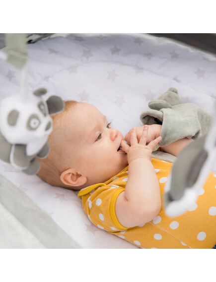 - Има 3 вградени играчки, които да висят и занимават Вашето бебче