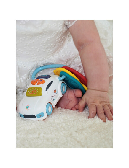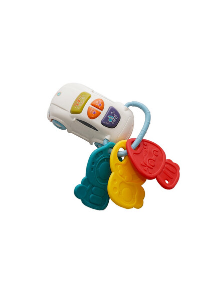 Със своите уникални функции тази играчка ще се превърне в любимия му аксесоар, който няма да иска да пусне от ръце! Трите цветни ключа са изработени от мек материал, идеален за гризкане и облекчение на болката при никнене на зъбки.