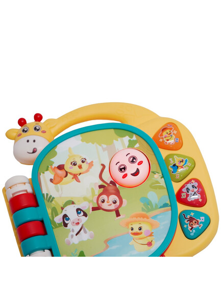 С четири интерактивни бутона отстрани, детето ви лесно ще може да пуска любимите си мелодии, а настройките за сила на звука позволяват избор между тихо и високо звучене, подходящо за всяка обстановка.