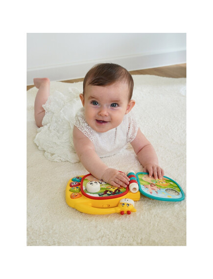 Тази цветна книжка включва пет ярки страници, които вашето дете може да изследва, предоставяйки чудесна смесица от четири звука на инструменти, мелодии и приспивни песни. Просто прелистете страницата, за да смените режима!