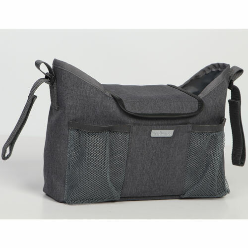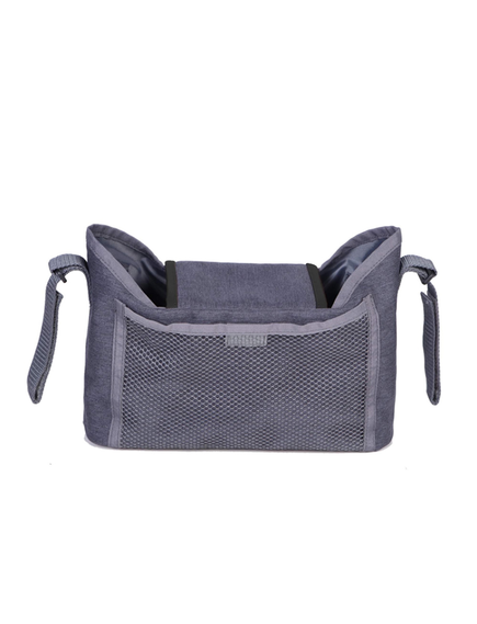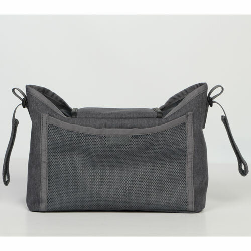 Има вътрешни джобове и 2 външни с мрежа. Отстрани има две каишки с велкро лепенки, за да можете да го закачите за количката на бебето си.