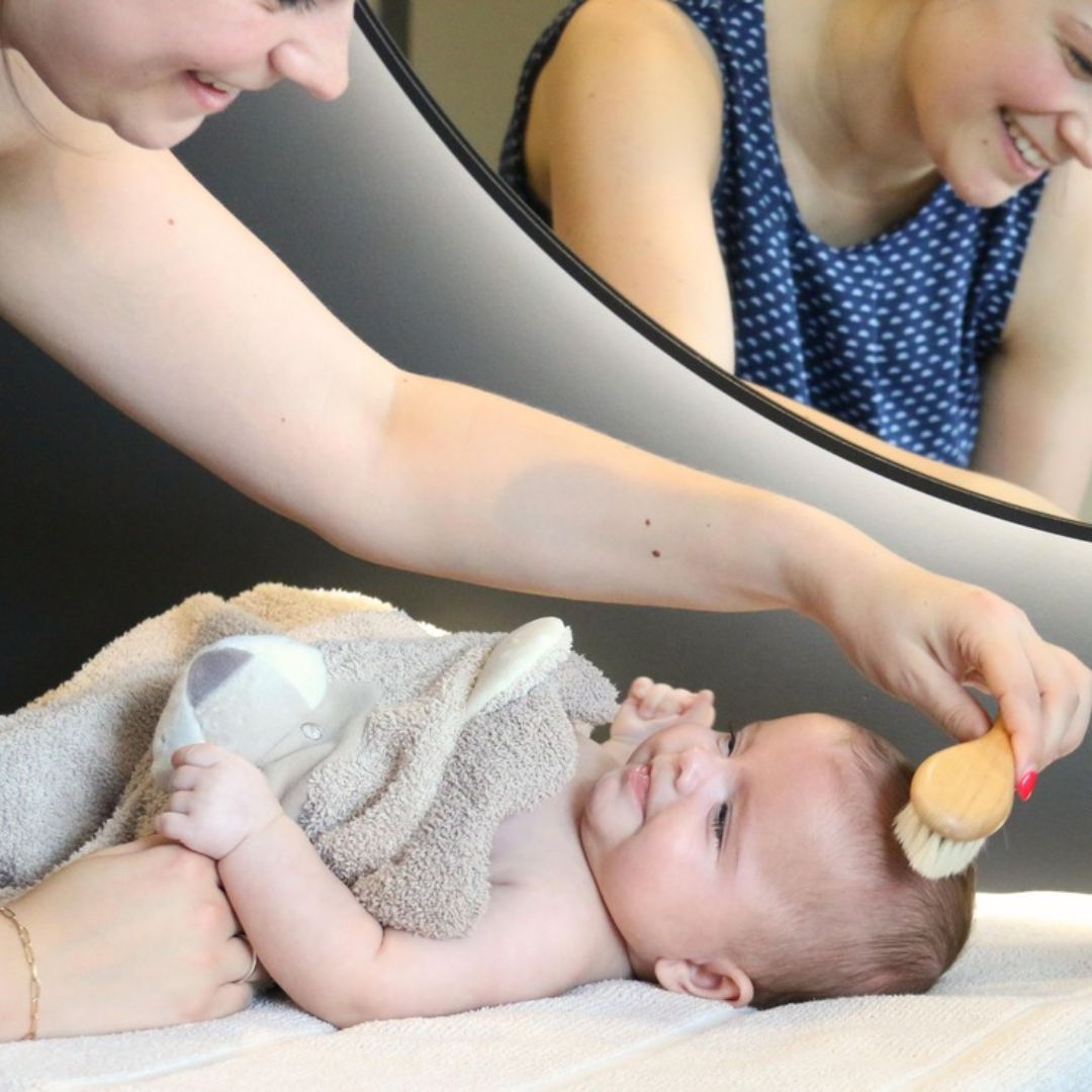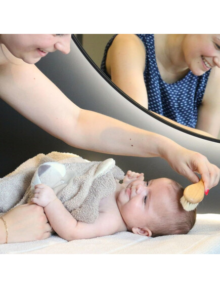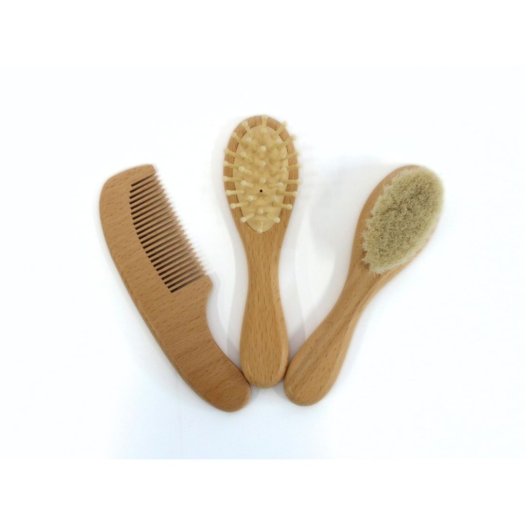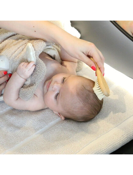 Bo Jungle създаде комплект четки и гребенче за грижа за нежната главичка на Вашето бебе. Комплектът е изработен от дърво, а четката е с естествен косъм.
