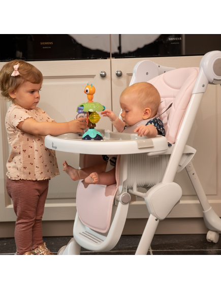 Има 7 степени на височина, в зависимост от възрастта на детето, коженото му покритие го прави изключително лесен за почистване, като това може да стане и само с парцалче, а като се сгъне, става изключително компактен и лесен за съхранение.
