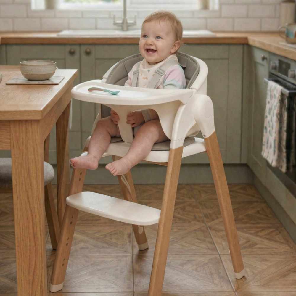 Ако търсите стил, комфорт и издръжливост, този стол за хранене е идеалното решение! Със своя уникален дизайн, който се адаптира към всеки етап от развитието на детето, той позволява на вашето мъниче да бъде наравно с останалите членове на семейството – от бебешка възраст, чаак докато порасне.