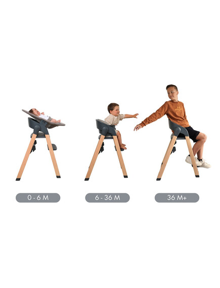 Ако търсите стил, комфорт и издръжливост, този стол за хранене е идеалното решение! Със своя уникален дизайн, който се адаптира към всеки етап от развитието на детето, той позволява на вашето мъниче да бъде наравно с останалите членове на семейството – от бебешка възраст, чаак докато порасне.