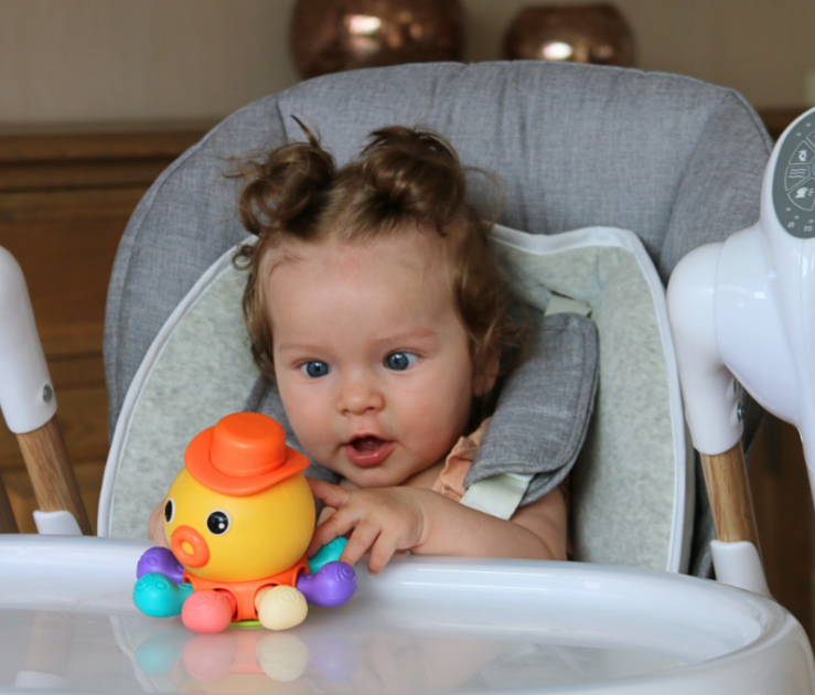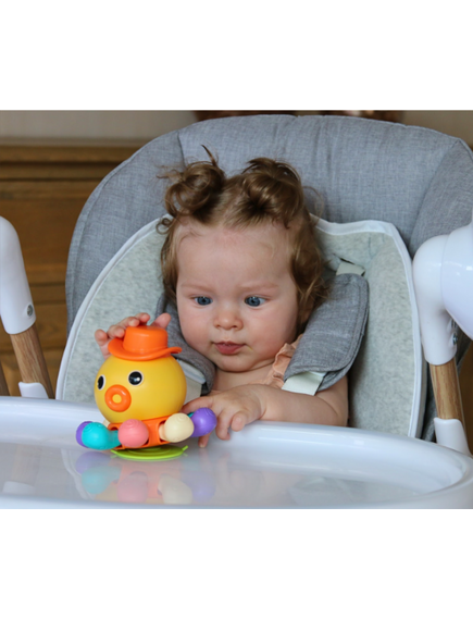 - Има вендуза, за да се прикрепи към столчето за хранене
