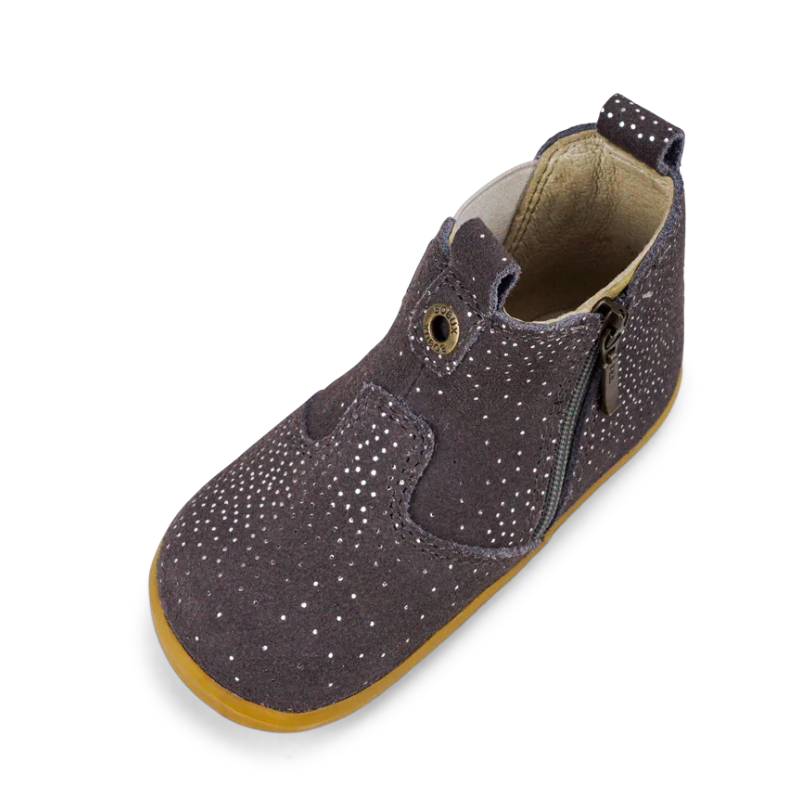 Jodhpur е висок клас обувки от Bobux! Този класически модел от серията iWalk ima ластик от едната страна на глезена и цип от другата. Това, заедно с изключително здравите шевове, позволяват на обувката да прилегне перфектно по формата на крака и да осигури максимална функционалност. Обувките са изключително стилни. Такива ги правят качествената кожа, от която са изработени, бродираното лого на кожената табелка, месинговите нитове. А практичният им цвят прави Jodhpur перфектно попадение за всяко облекло.