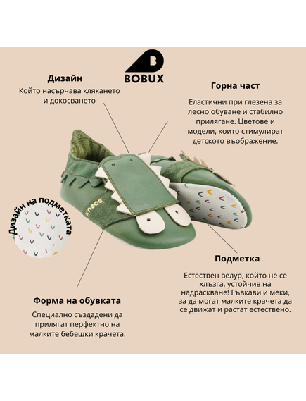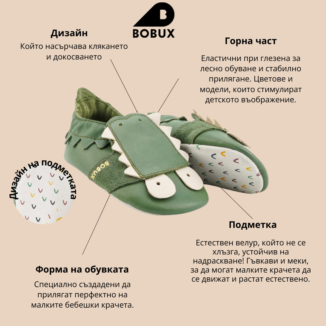 Bobux проектира обувки, които подпомагат здравословното развитие и свободата на движение на бебетата още от първите им стъпки. Bobux Soft Sole са перфектният избор за първото пълзене и стъпване на малкото ви съкровище, осигурявайки комфорт, защита и свобода на всяко движение.