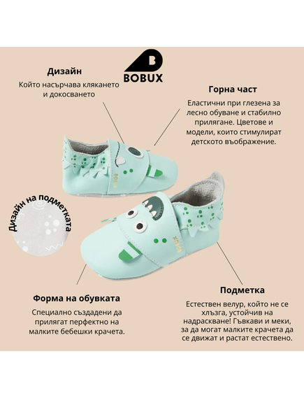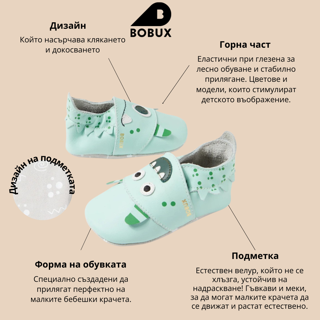 Bobux проектира обувки, които подпомагат здравословното развитие и свободата на движение на бебетата още от първите им стъпки. Bobux Soft Sole са перфектният избор за първото пълзене и стъпване на малкото ви съкровище, осигурявайки комфорт, защита и свобода на всяко движение.