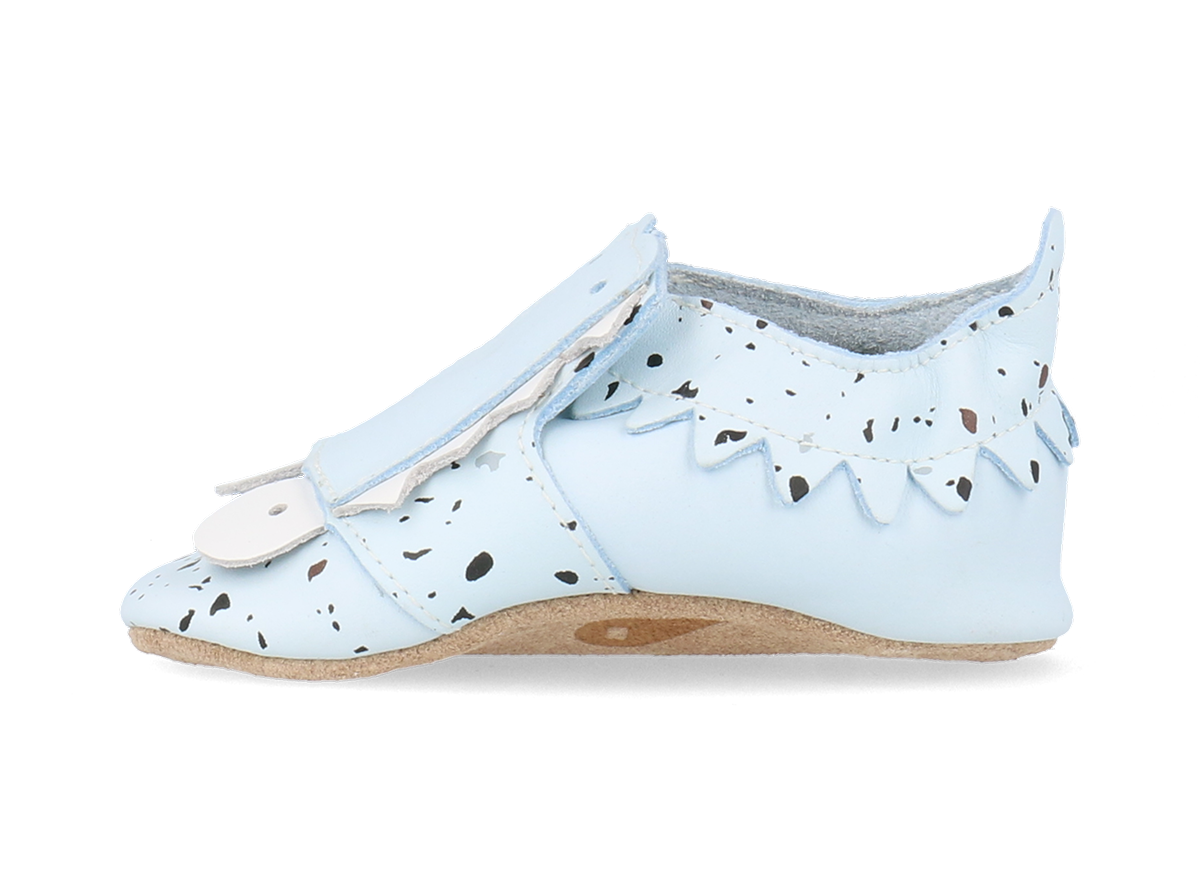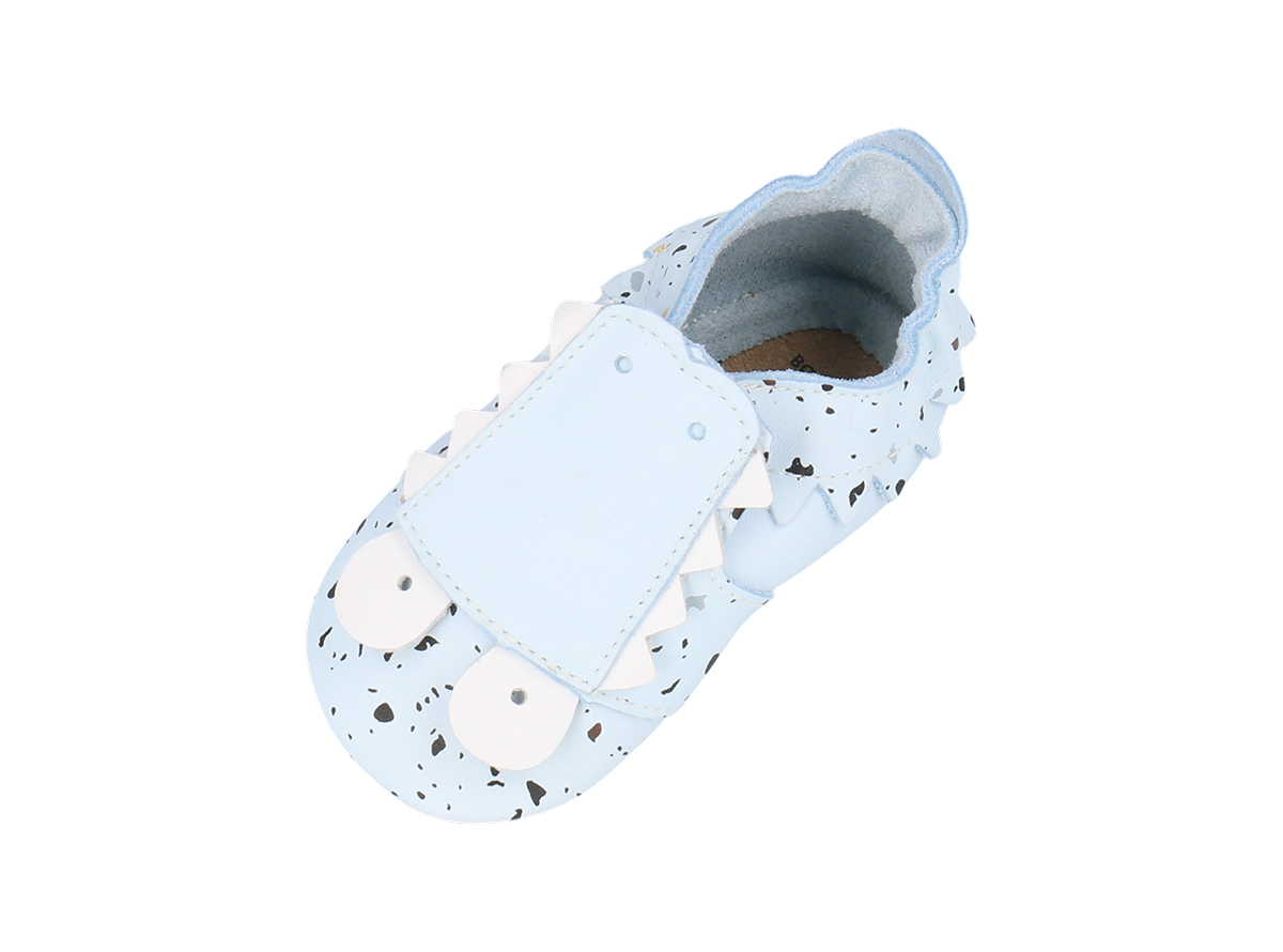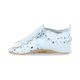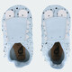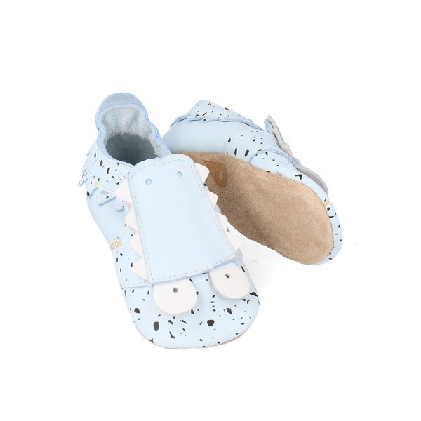 Меката, нехлъзгаща се подметка от велур помага на детето да усеща повърхността, подобрявайки увереността, стойката и баланса му. Двойният шев гарантира стабилност и устойчивост, осигурявайки дълготрайна употреба.