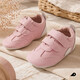 Меката, нехлъзгаща се подметка от велур помага на детето да усеща повърхността, подобрявайки увереността, стойката и баланса му. Двойният шев гарантира стабилност и устойчивост, осигурявайки дълготрайна употреба.