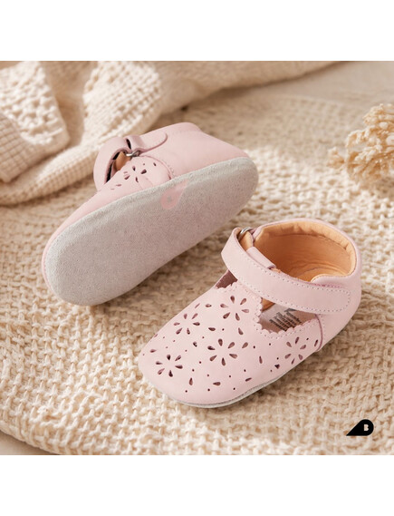 Меката, нехлъзгаща се подметка от велур помага на детето да усеща повърхността, подобрявайки увереността, стойката и баланса му. Двойният шев гарантира стабилност и устойчивост, осигурявайки дълготрайна употреба.