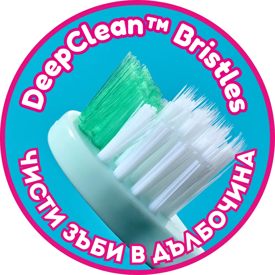 Специално проектираните косъмчета DeepClean достигат дори до труднодостъпните места, предлагайки цялостно почистване. Късите влакна почистват повърхността, докато по-дългите влакна проникват между зъбите.