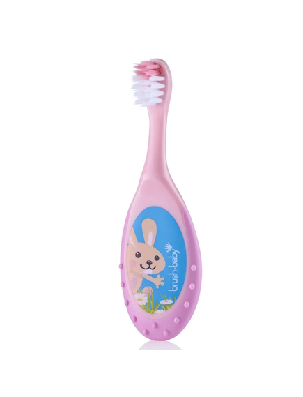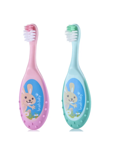 Brush-Baby: 2в1 Четка за зъби FlossBrush и гризалка - 0-3 години (2бр. в опаковка) в розово и тюркоаз