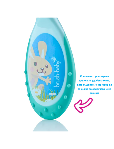 Защо е необходима: С тази четка миенето на зъбите се превръща в приятно изживяване, което не стресира детето, като в същото време облекчава болката във венците. Това е идеален инструмент за съчетаване на чистотата с комфорта и облекчението на болезнените венци на вашето бебе. Тази четка за зъби помага на детето да се запознае с процеса на миене, превръщайки ежедневната грижа за зъбите в приятна рутина. Здравата усмивка започва от първата четка!