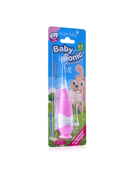BabySonic Pink има малка и лека глава, с меки влакна, които са идеални за новите зъби и венци на бебето. Вибрацията, за разлика от въртеливото движение, е изключително нежна и ефективна за защита на чувствителните венци и първите зъбки на детето. Вендузата в долната част предлага лесен и практичен начин за съхранение в банята, като същевременно предлага весел и закачлив тон.