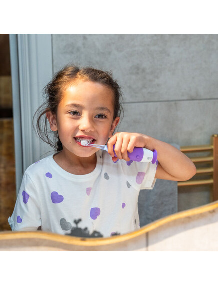 - Развийте добри навици: 2-минутен автоматичен таймер и 30-секундни напомняния, които помагат на децата да мият зъбите си методично, както препоръчват зъболекарите.