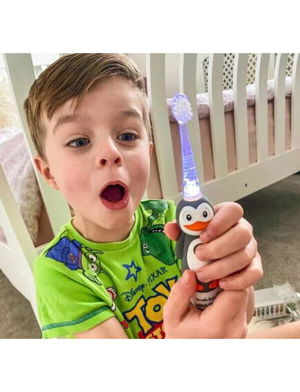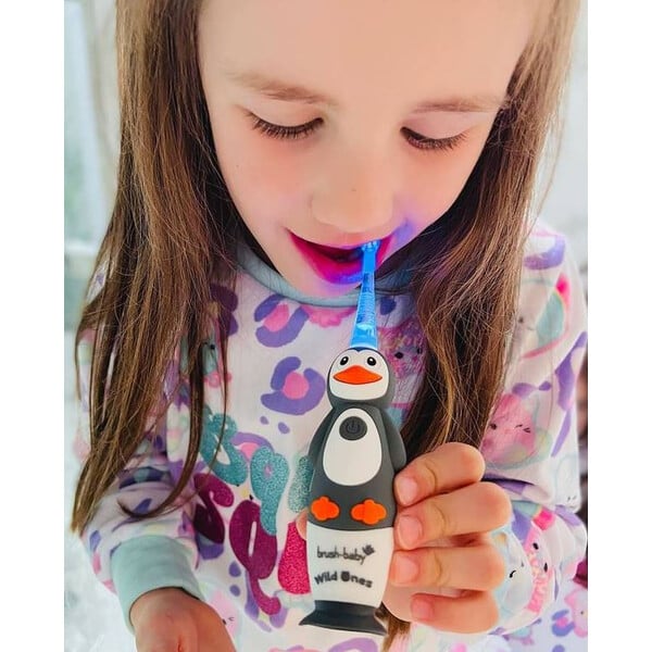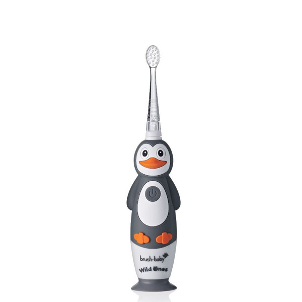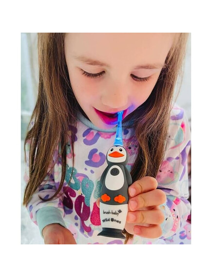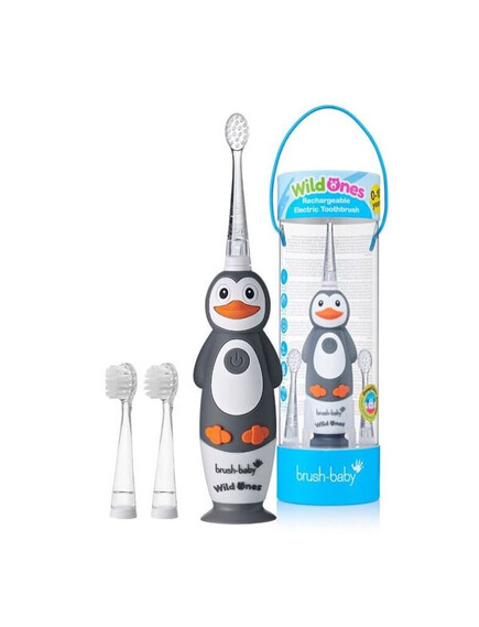 Brush-Baby: Електрическа четка за зъби с USB захранване и 2 резервни глави WildOnes от 0 до 10+ години - Пингвинче