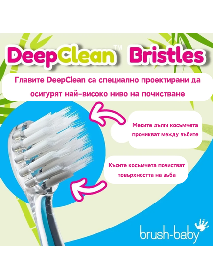 - Безопасно почистване: Меките влакна нежно почистват зъбите, като осигуряват безопасност за венците на бебето .
